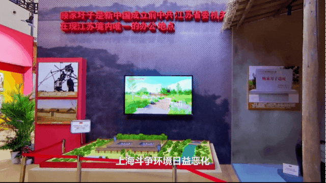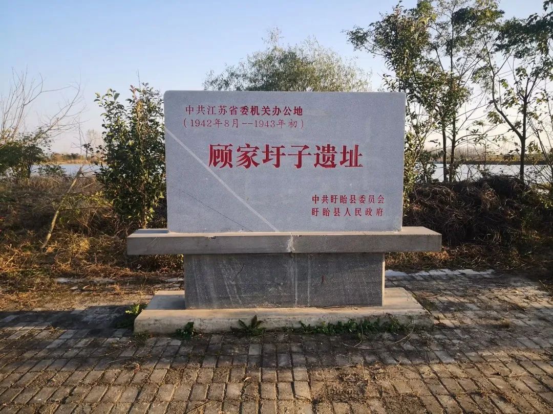 1942年8月,江苏省委机关、区委以上干部和已暴露身份的党员干部200余人,由上海转移到了顾家圩子。办公地点是在一个较大的地主庄院,有两个雕堡式的炮楼。中国共产党在江苏历史展上,展出了当年省委机关工作人员在顾家圩子用过的坛子、桌子、罐子、铜壶、石磨,在大通水库水底顾家圩子遗址上发现的青砖,中共盱眙县委、盱眙县人民政府所立“中共江苏省委机关办公地(1942年8月—1943年初)顾家圩子遗址”保护碑照片以及根据后人口述复制的前三间后三间带旁厢的沙盘模型。