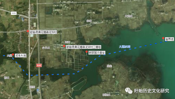 1958年,因修建水库,地势低洼的顾家圩子被淹没于水底,水面属天长管辖,西岸属盱眙黄花塘镇泥沛村三塘组管辖。水库西北处建有三塘抽水站,三塘向东是仁庄、周庄、维庄,属盱眙管辖。维庄向南是大老庄,属天长管辖。顾家圩子旧址位于三塘与仁庄相夹之处,据当地村民反映,遇到大旱之年,遗址露出水面,可以看到一地残存的碎砖。