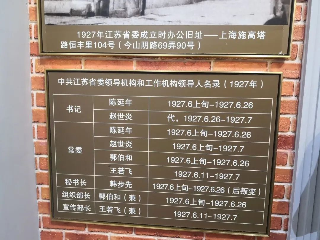 2021年,党的百年华诞,中国共产党在江苏历史展在南京举办,展出了江苏省委在不同历史时期主要办公旧址。1927年的上海施高塔路恒丰里104号,1937年12月至1938年秋的上海巨籁达路同福里,1938年秋至1939年4月的上海蒲石路,1942年8月至1943年初的顾家圩子。