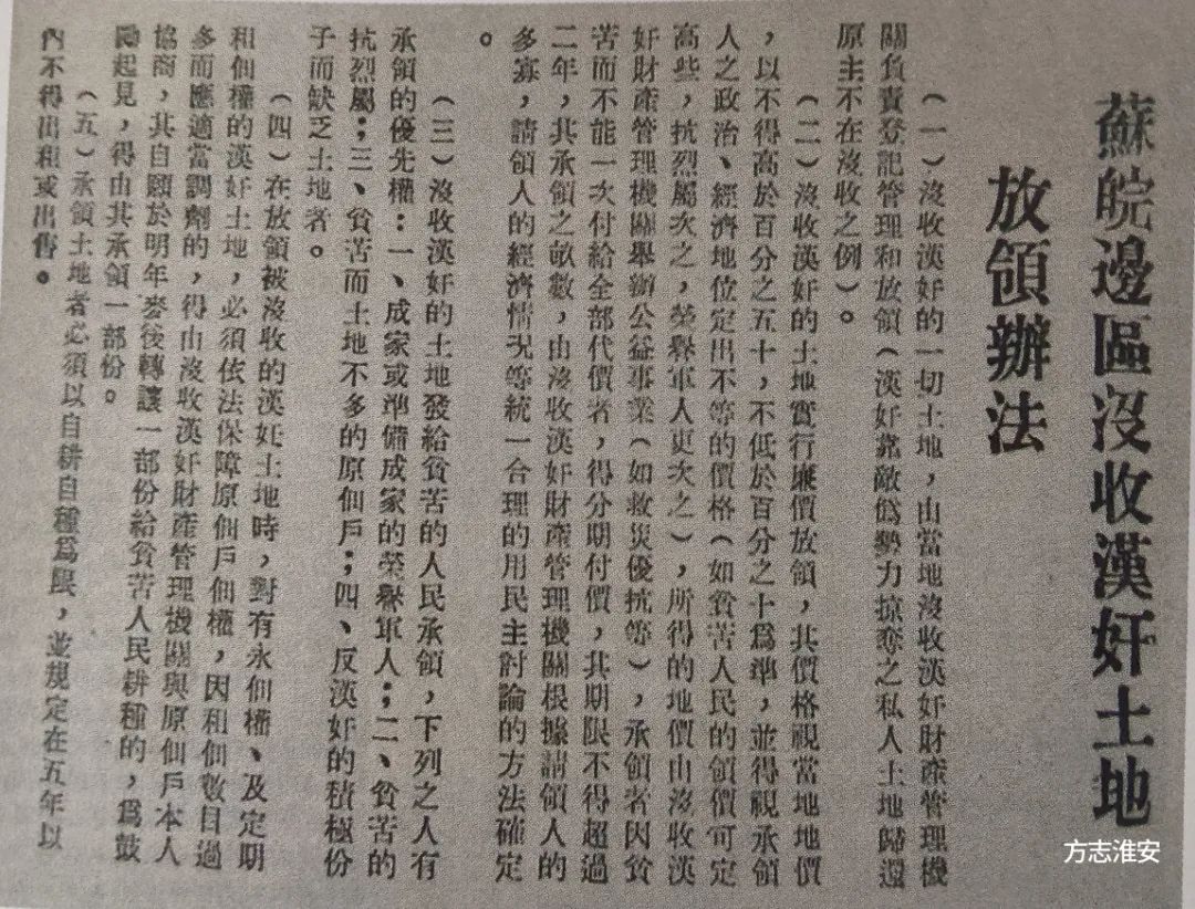 苏皖边区政府制定的《没收汉奸土地放领办法》