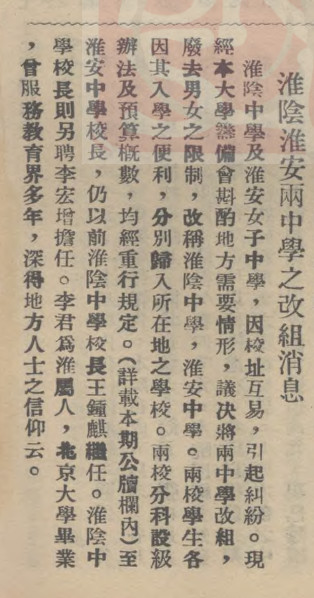 原本因为驻军占据省九中校舍,淮安女中不得不推迟到1927年11月1日开学,然后又闹出了易校风波,这第一学期就这样在一个乱字中过去了。