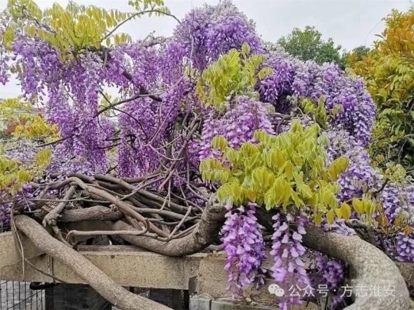 如今,这里已辟为公共游园,亭台小巧,广场开阔,紫藤依旧年年绽放如紫色云霞。古人爱紫藤,既因“紫气东来”的祥瑞寓意,亦因其枝蔓连绵、籽实累累,象征福禄绵长、子孙繁盛。此藤亦然,它不只是一株植物,更是一段活着的历史,既承载着蒋氏三代人文心相续的记忆,也见证着一座古城百年来的变迁。