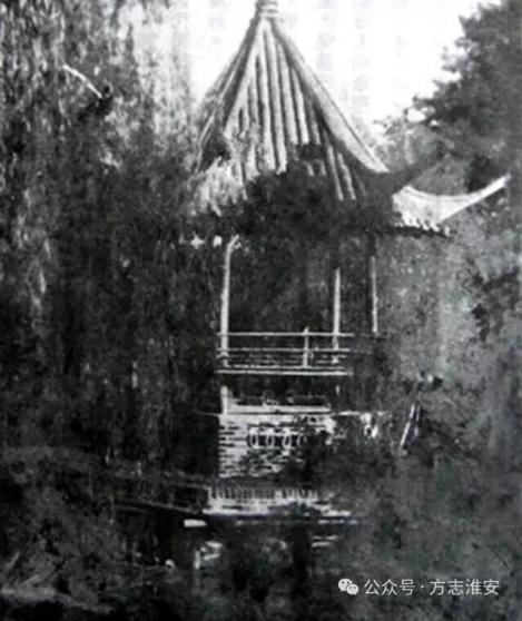 拍摄于民国年间的勺湖与北角楼照片 ,镜头中的人物为蒋一安(图片来源:文史淮安网)