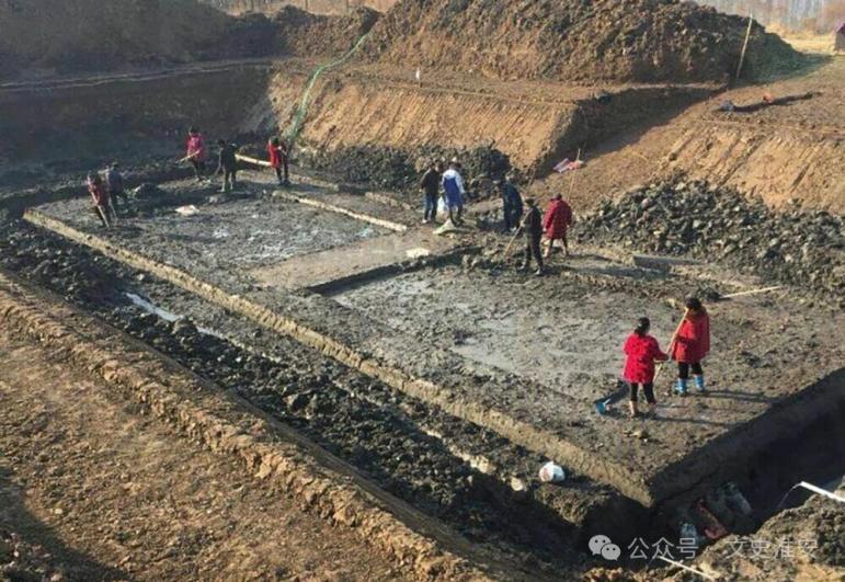 2016年4月,在经国家文物局批准后,江苏省考古研究所由甘恢元同志领队,在淮安区文物局工作人员配合下,对遗址进行选点试掘。为了节约时间和工作量,工作队选择大鱼塘西侧1个小鱼塘首先勘探。该小鱼塘水下50厘米左右就是文化层,只要抽干水就可进行布方,大大减少了工作量。至10月,通过半年的考古发掘,探明总面积约2000平米,发现了10余件石器,有石斧、石凿等,数十件陶器,有鼎、杯、纺织轮、兽皮打磨器等器具,以及大量陶片,其中还发现1处清晰的房址遗迹。