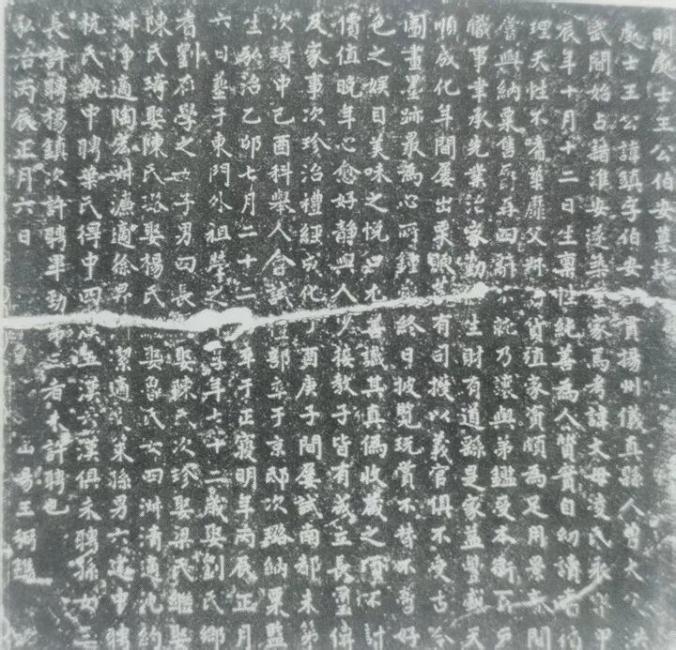 墓志的志盖上八个篆书大字“明故王公伯安之墓”,说明墓主是“王伯安”。志底上的文字简要介绍了“王伯安”的一生。他名叫王镇,字伯安,生于永乐甲辰年(1424),卒于弘治乙卯年(1495),活了72岁,在那个年代算是高寿。王镇籍贯是仪征,从他的祖父起就移居淮安。他来自一个富裕家庭。可能是因为定居在大运河边的缘故,王镇的父亲和叔叔凭借水运便利做生意赚了钱,整个家族非常殷实。
