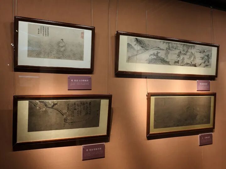 此次在镇江博物馆展出的是明代佚名《松屋读书图》、夏昶《墨竹图》、李在《米氏云山图》、陈录《墨梅诗画》、殷善《钟馗图》、徐良《太白骑鲸图》等八件。