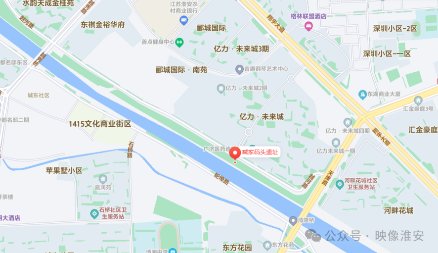 臧家码头地处昔日“山清界”碑(山阳县与清河县界碑)两侧,这里河面开阔,水流平缓,岸线稳固。据咸丰《清河县志》记载,此地曾矗立着“到此是岸”的高大牌坊,警示北上船只:前方水道险恶,必须在此上岸换乘车马。