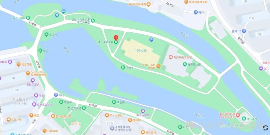 中洲岛,旧称中洲,坐落于清江浦区,临近清江大闸,是介于里运河与越河之间的长三角形小岛,总面积约40亩。它形成于明万历年间,当时的河道总督潘季驯于清江大闸旁开U形越(月)河并修建越闸,以减缓清江闸的急流,方便漕挽,越河U形湾内的陆地就形成了中洲。