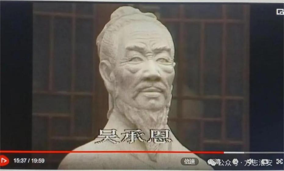 《话说运河》中介绍依据出土头盖骨复原制作的吴承恩塑像