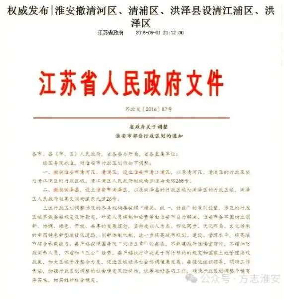 成立清江浦区得到了国务院和省委、省政府的认可支持