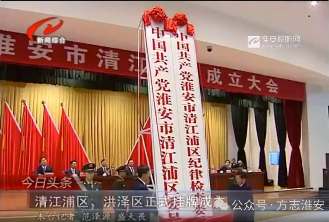 2016年10月8日,时任市领导姚晓东、惠建林、王维凯、张彤、戚寿余、李晓雷、陈洪玉、刘必权出席了清江浦区成立大会。市委书记姚晓东,市委常委、纪委书记李晓雷分别为中共淮安市清江浦区委、纪委揭牌。