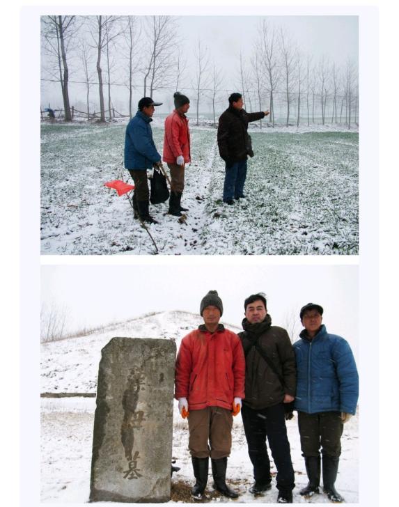 2008年1月10日至22日,我受"淮阴(码头)历史文化保护与建设工作指挥部"委托,聘请了陕西凤翔秦国故城的技工刘显谋与张志军来甘罗城进行考古勘探。刘师傅与我都是1953年出生的,他具有丰富的考古钻探经验,曾协助省、市完成盱眙大云山江都王陵与清江浦区韩信城遗址的勘探项目。此次勘探历时12天,淮阴县图书馆许景阳书记具体负责此次勘探工作。因年关将至,尽管在冰雪天气我们都坚持在野外操作(图3)。