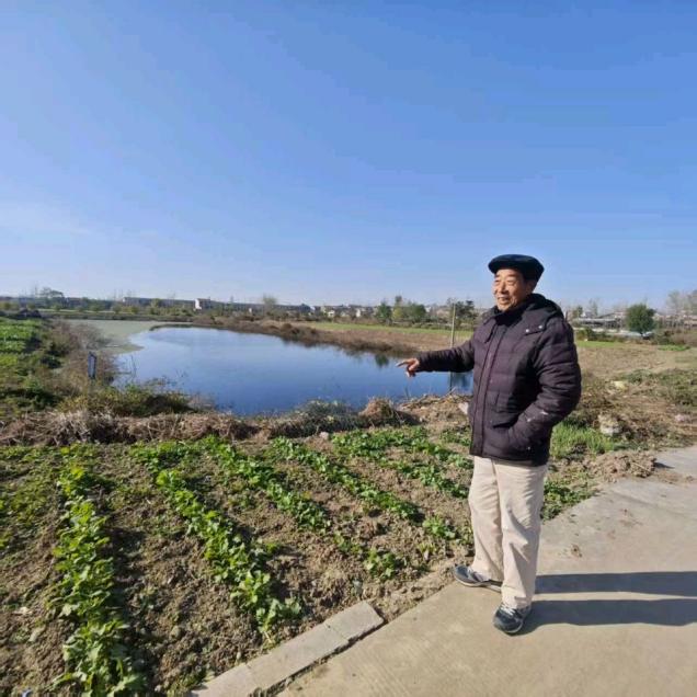 如果说马头镇文物保护是篇大文章,那么甘罗城遗址就是其中最具色彩的篇章。古代县志已把"甘罗晚照"列入淮阴八景之一。我自1986年开始涉足马头考古,40多年来,我亲眼目睹着甘罗城遗址的变迁,可谓喜忧参半。喜的是甘罗城遗址越来越得到各级人民政府的重视,现已成为省级保护单位,并打造成马头镇对外宣传展示的一个旅游景点。忧的是40余年来遗址不断遭受破坏,原有良好的遗产风貌被大小鱼塘侵蚀,真是满目疮痍。东城垣与北城垣也被公路与小区建设所蚕食。几十年来,凡我能接触到马头镇的"官老爷",我都会积极地向他们宣传保护甘罗城遗址的重要性。然而,马头镇"官老爷"官越做越大,可是甘罗城遗址的保护面积却越来越小,真让我痛心疾首!有人会问,甘罗城这片荒芜之地什么都看不到,有什么保护的价值?前面我已经谈到了这个问题,但我还要从考古学与文物学研究的角度再解释一下:甘罗城遗址地下埋藏是极其丰富的,因为它有近五千年的堆积,遗迹众多,它是我们研究淮安历史文化发展的重要资料。如果我们任其开挖,特别是动用现在大机械操作,把甘罗城遗址开挖出那么多鱼塘,直接威胁到古代社会堆积的文化层。这些不可移动历史遗迹比出土的可移动文物更具有考古价值,它是一部弥足珍贵的无字天书。为撰写本篇文章,我又去了趟甘罗城,我请老朋友苏明芳陪我在遗址上转了一圈(图7)。