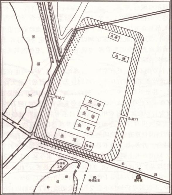 2002年春,马头镇在甘罗城遗址南面开挖韩信湖出土了不少缸、罐、盆、碗陶瓷文物,还有大量的条石、石础、瓦当、木桩等。我随淮阴县图书馆于洪友、徐业龙二位前去征集。在施工现场我感觉到这一片域就是所谓的"淮阴故城"遗址,它是唐宋以后逐渐由甘罗城迁移过来的。出土的陶瓷器物以宋、元为主,文化层覆盖在1.5米厚的黄沙层下。遗址分布范围大致划定在马头镇码太路以南、安澜路以东(包括马头老街)、漂母路(码洪路)以西、马头村四组水泥路以北地带,以现在韩信故里公园为核心区域,面积约15万平方米。到了明清时期,马头的市井格局又移置到洪泽湖大堤上来了,逐渐形成了马头镇这条南北向老街(安澜街)。