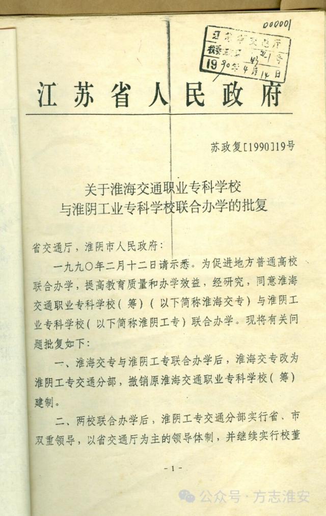 1990年4月,江苏省政府发文,同意淮海交专与淮阴工学院联合办学