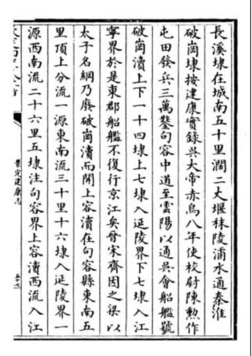 《景定建康志》五十卷,始撰于宋理宗景定二年(1261),是我国现存最早的一部记载南京历史的地方志,其中有关于“破岗渎”中埭坝的描述,“破岗渎上下一十四埭,上七埭入延陵界,下七埭入江宁界,于是东郡船舰不复行京江矣”。南京大学历史学院教授贺云翱介绍,破岗渎最大的特征在于其由岗顶向两侧各建7座堰埭来分段节制、拦蓄水源、控制水位,形成一组大规模的梯级航道。“堰埭的修建使破岗渎成为我国有记载的最早完全用建筑物控制水量的运河,体现了当时很高的水利工程技术水平。”为了缓解破岗渎日趋紧张的水运交通,梁武帝时于破岗渎北又开凿了上容渎。