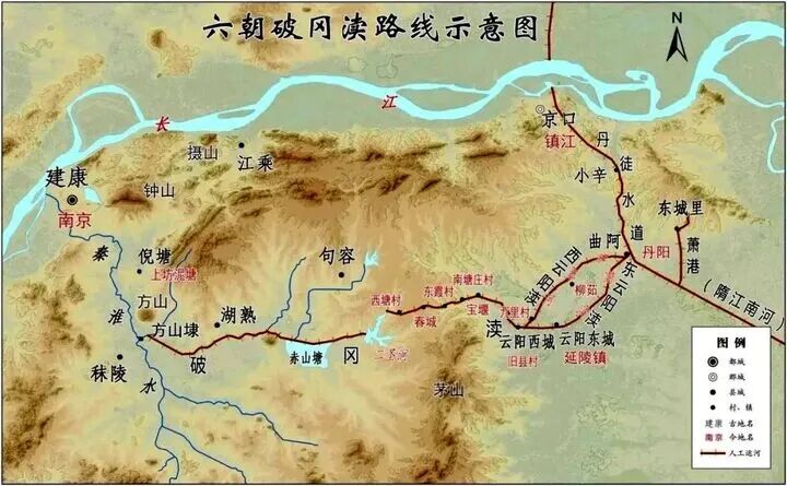 破岗渎和上容渎均开凿于六朝时期,其中破岗渎因地位显要,屡见于史籍。关于破岗渎开凿的最早记载,见于晋朝陈寿《三国志》中的《吴书·吴主孙权传》。赤乌八年(245)八月,东吴孙权迁都建业(今南京)后,“遣校尉陈勋将屯田及作士三万人,凿句容中道,自小其至云阳西城,通会市,作邸阁”。金陵图书馆特藏部主任纪景超介绍,破岗渎从句容茅山延伸至江宁方山,这条人工河道漕运繁忙,直至隋唐时期才逐渐退出历史舞台。